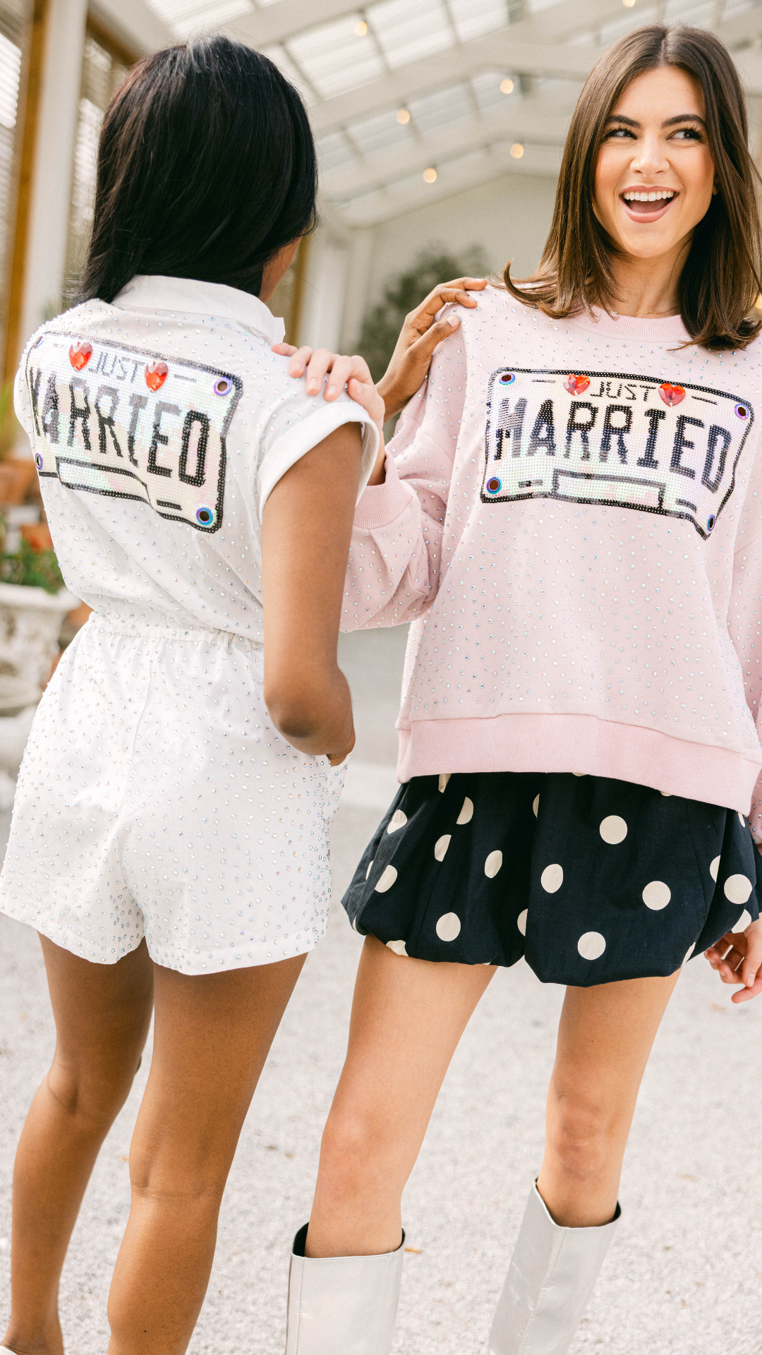 White Rhinestone 'Just Married' Romper
