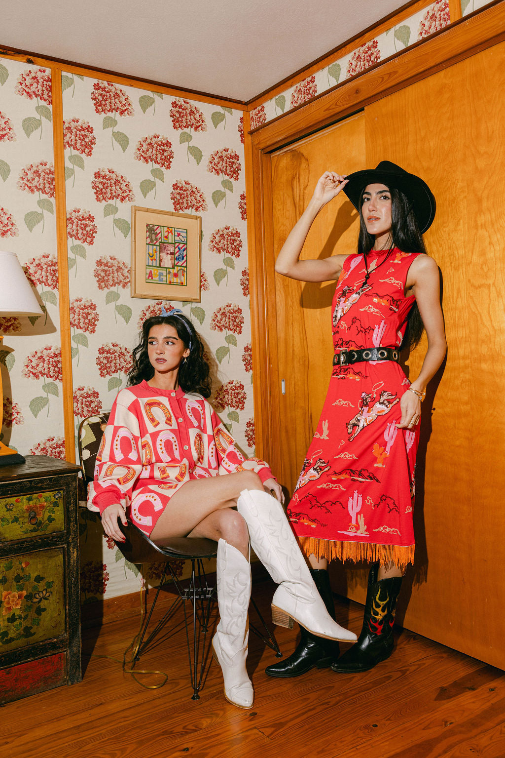 Red Bucking Cowgirl Fringe Bottom Midi Tank Dress