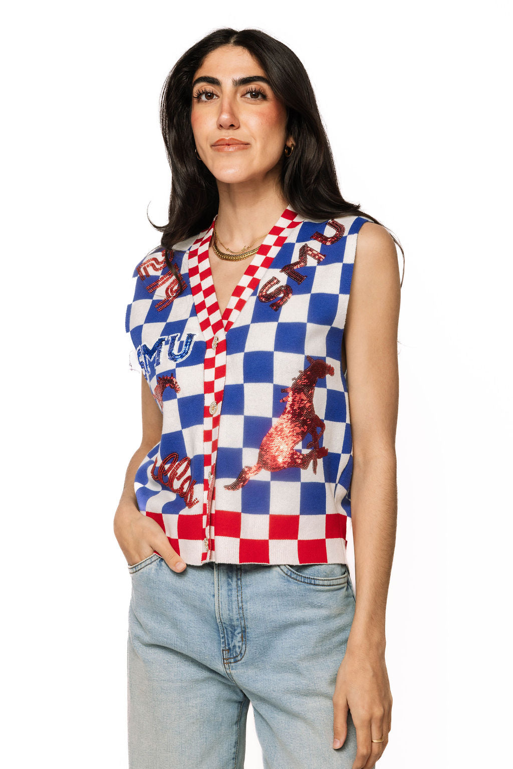 Licensed Sample SMU Checkered Team Icons Vest