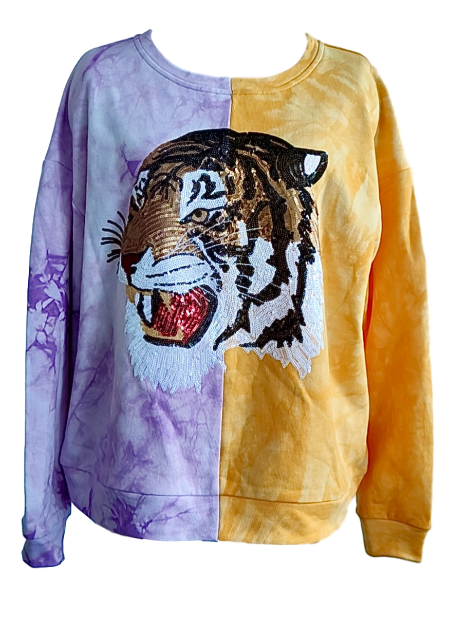 Split Tie Dye Tiger Sweatshirt