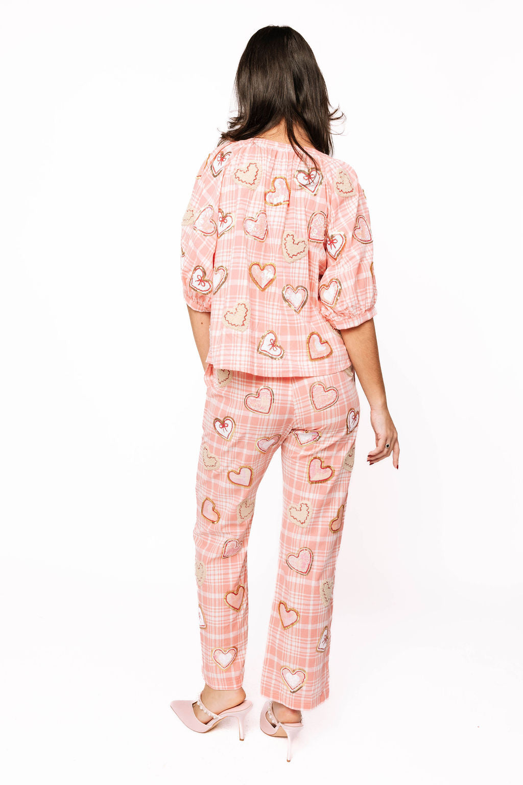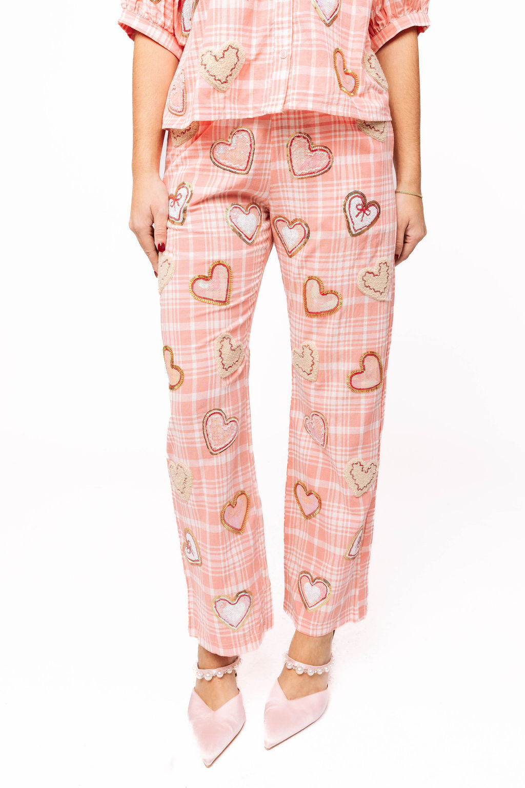 Sample Light Pink & White Plaid Heart Cookies Pant