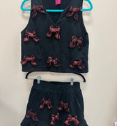 SAMPLE- BLACK & GARNET 3D BOW TANK/SKORT SET