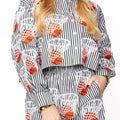 Get ready to shoot some style with these Black & White Stripe Basketball Hoop Shorts! Featuring a fun striped pattern and eye-catching basketball hoop design, these shorts are perfect for court-ready vibes or casual everyday wear. The elastic waistband ensures a comfortable, secure fit that moves with you. Pair with our matching top to complete your full court-inspired look and turn heads wherever you go!