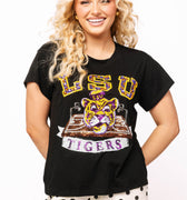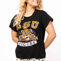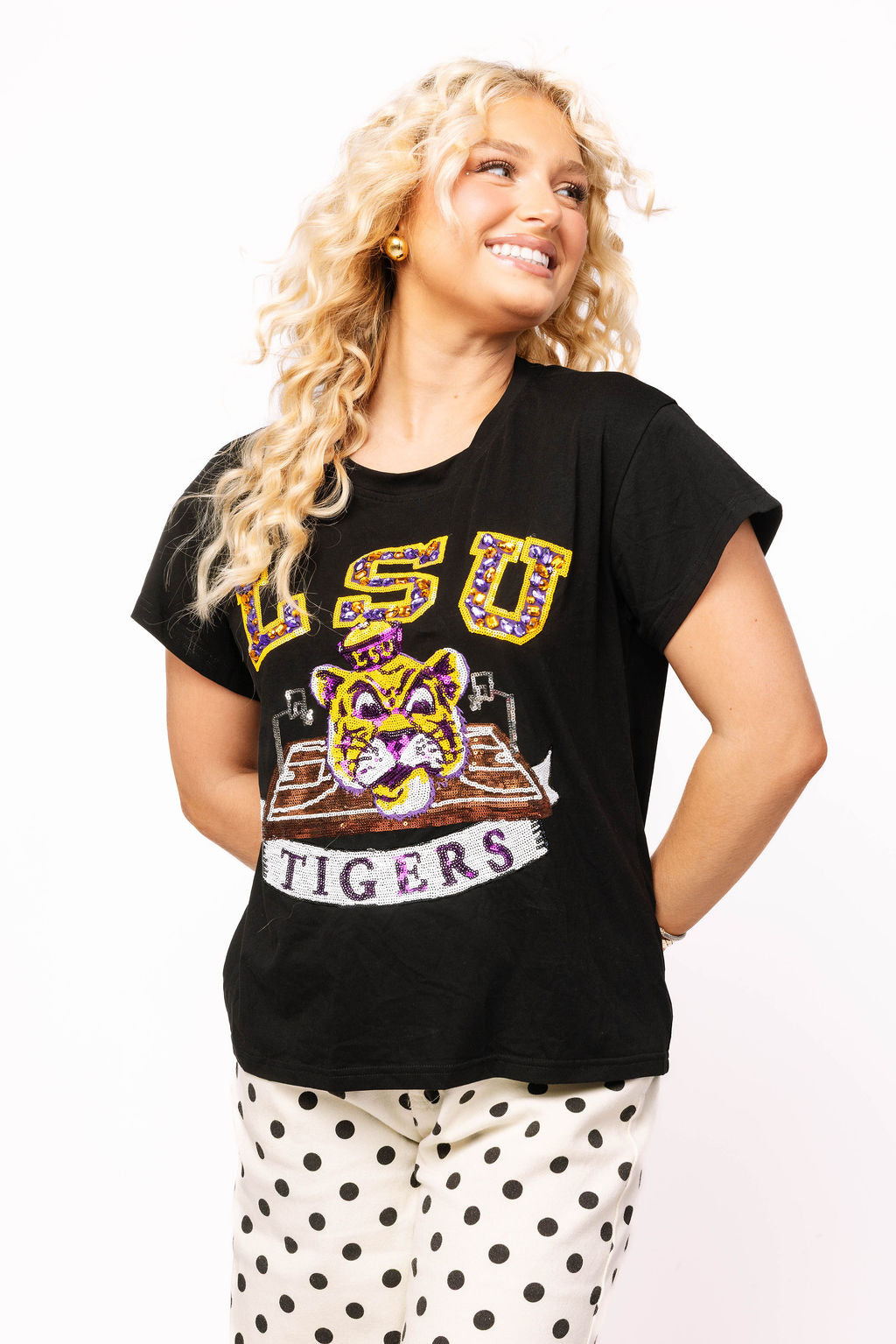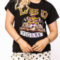 Rock your Tiger pride in this officially licensed LSU basketball court tee! Featuring authentic team graphics on premium black cotton, this playful piece brings stadium energy to your everyday style. Perfect for game day, casual hangouts, or showing your purple and gold spirit wherever you go. Comfortable, classic, and undeniably cool—because true fans wear their loyalty loud and proud.