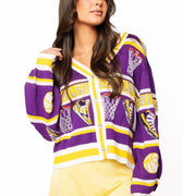 Licensed LSU Striped Basketball Rhinestone Icon Cardigan