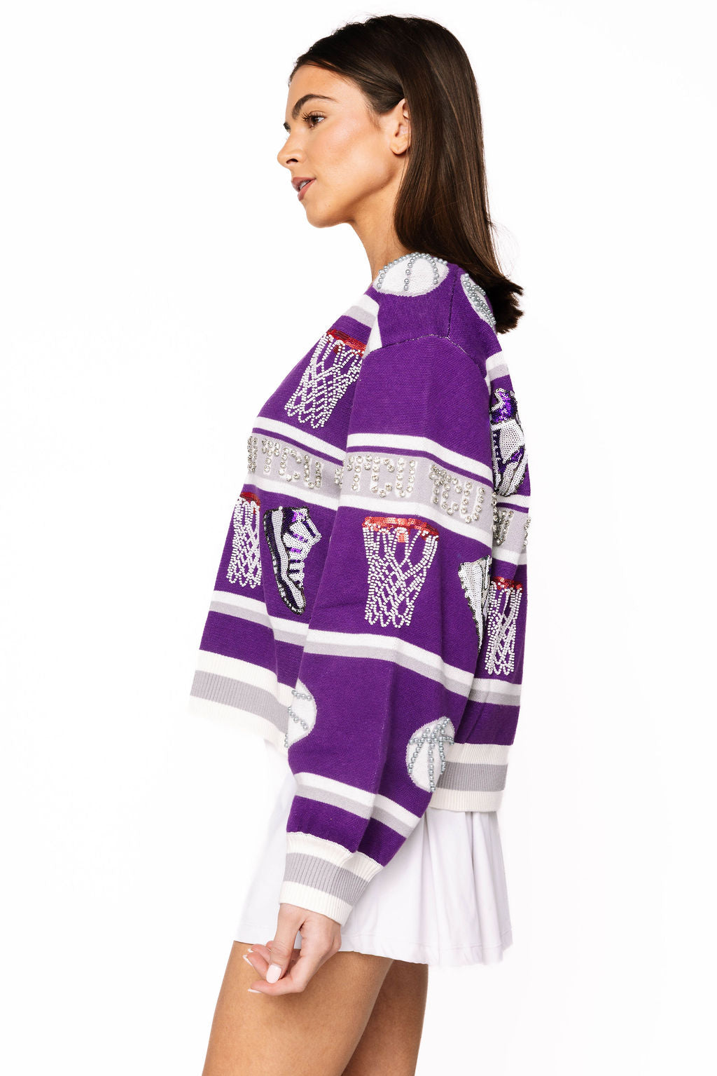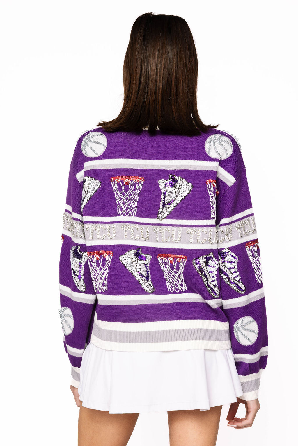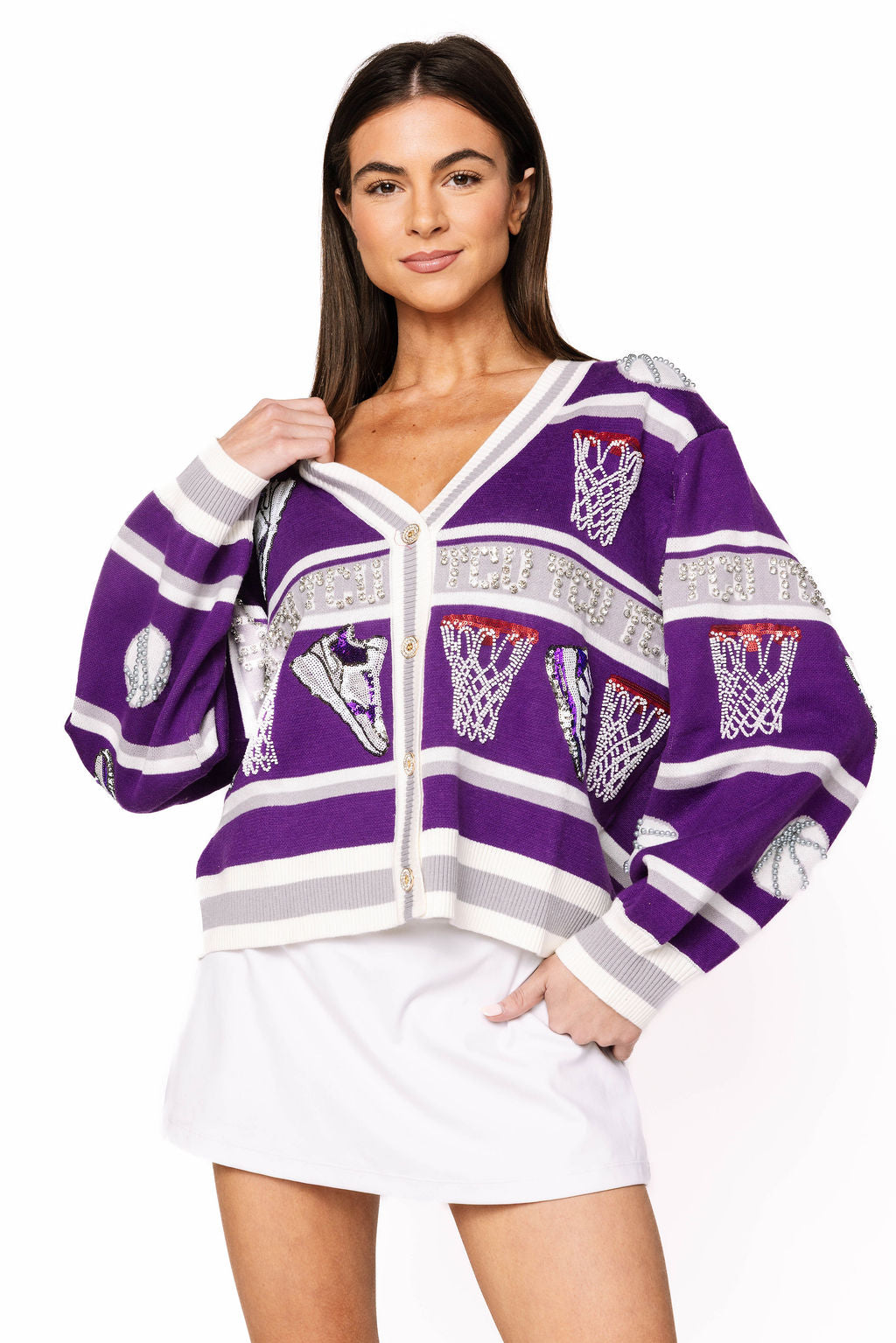 Licensed TCU Striped Basketball Rhinestone Icon Cardigan