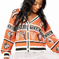 Shoot for style in this Texas-themed cardigan that celebrates your Lone Star pride! Featuring bold stripes paired with a sparkling rhinestone basketball icon, this officially licensed piece brings game-day energy to your everyday wardrobe. Perfect for cheering on your favorite team or showing off your Texas spirit with a touch of glamorous flair. Cozy, eye-catching, and totally ready to turn heads.