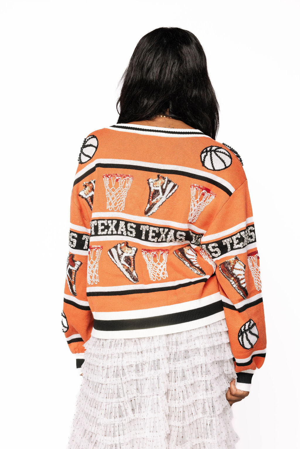 Licensed Texas Striped Basketball Rhinestone Icon Cardigan