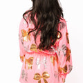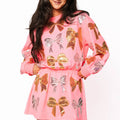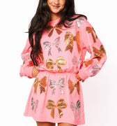 SAMPLE- NEON PINK SILVER & GOLD METALLIC BOW SWEATSHIRT DRESS