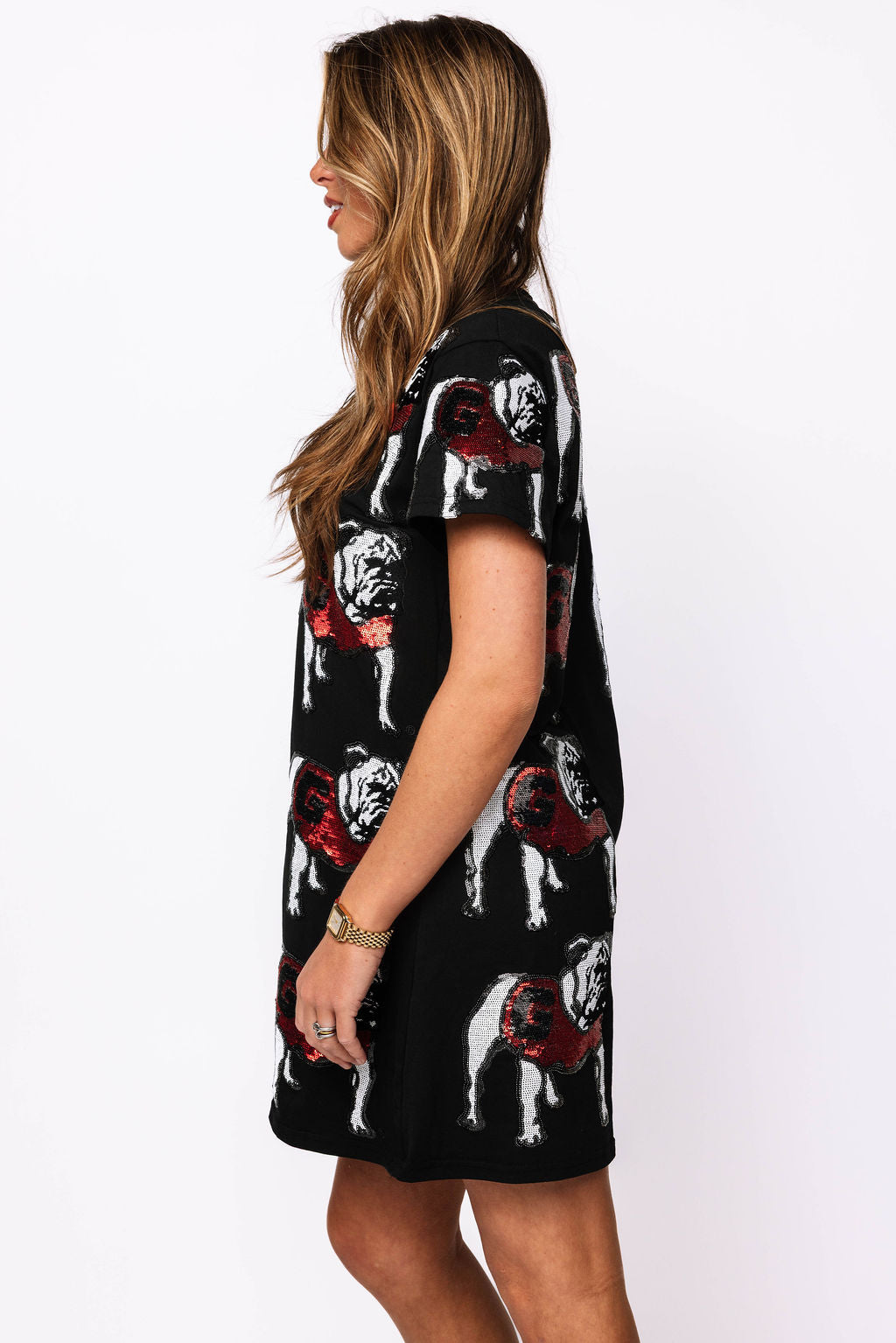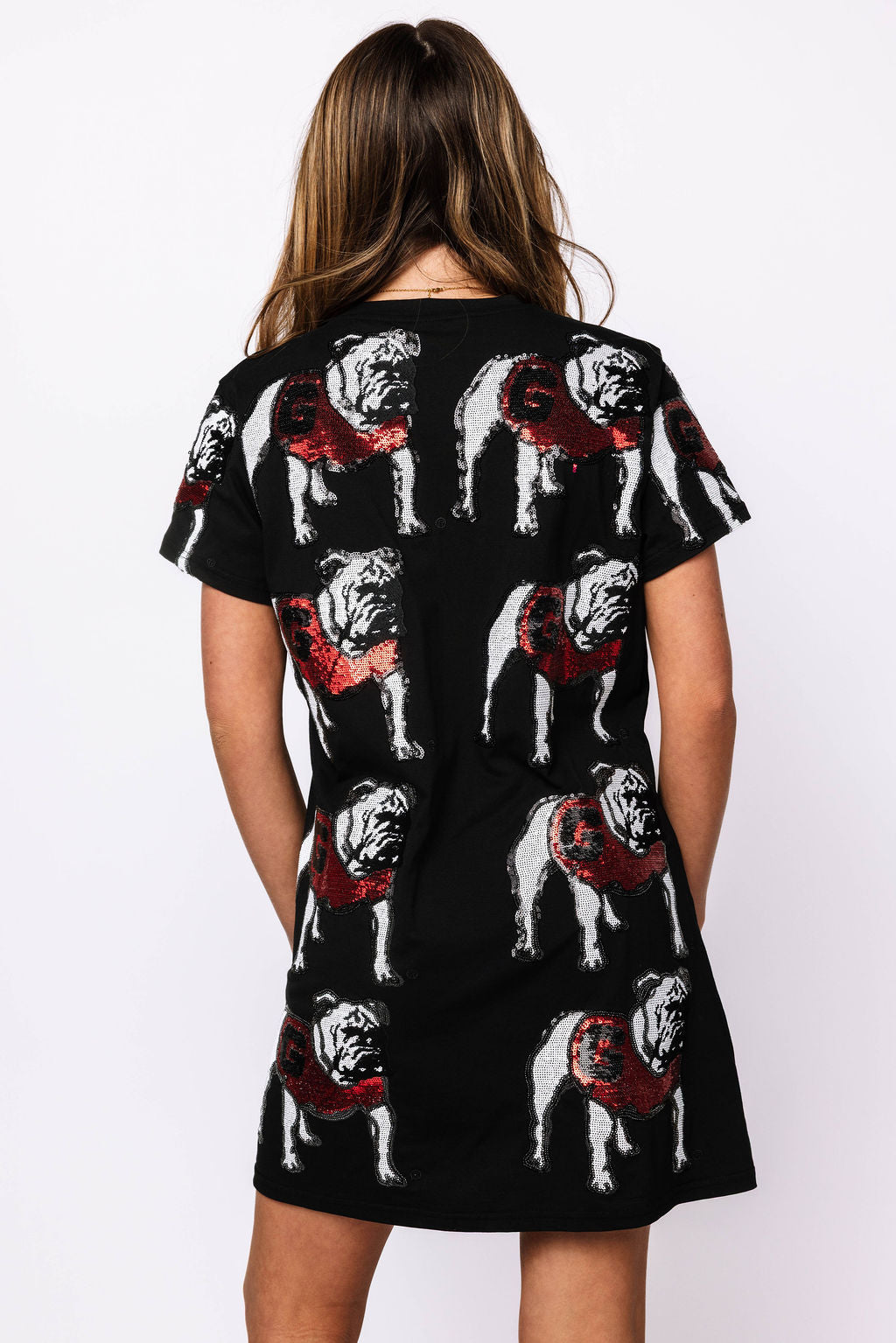 Licensed Black Sequin UGA Bulldog Tee Dress
