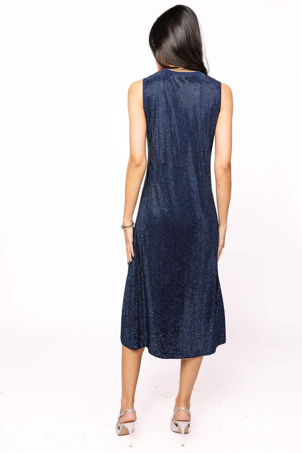 Navy Full Rhinestone Midi Active Dress