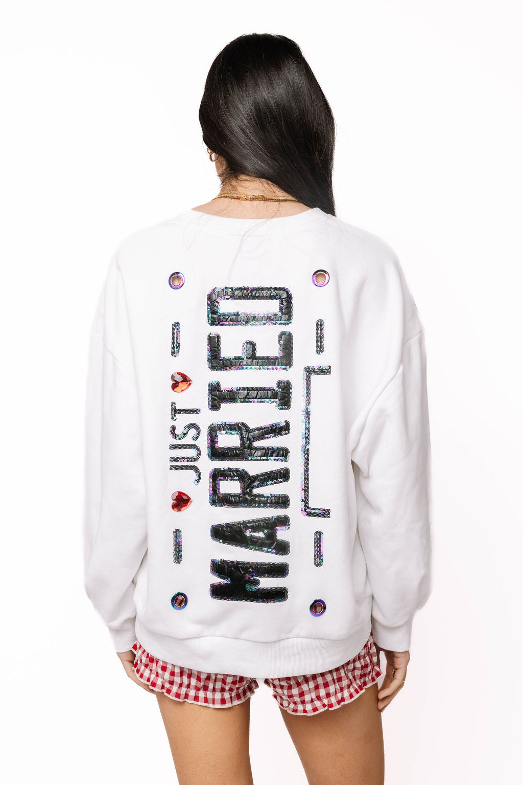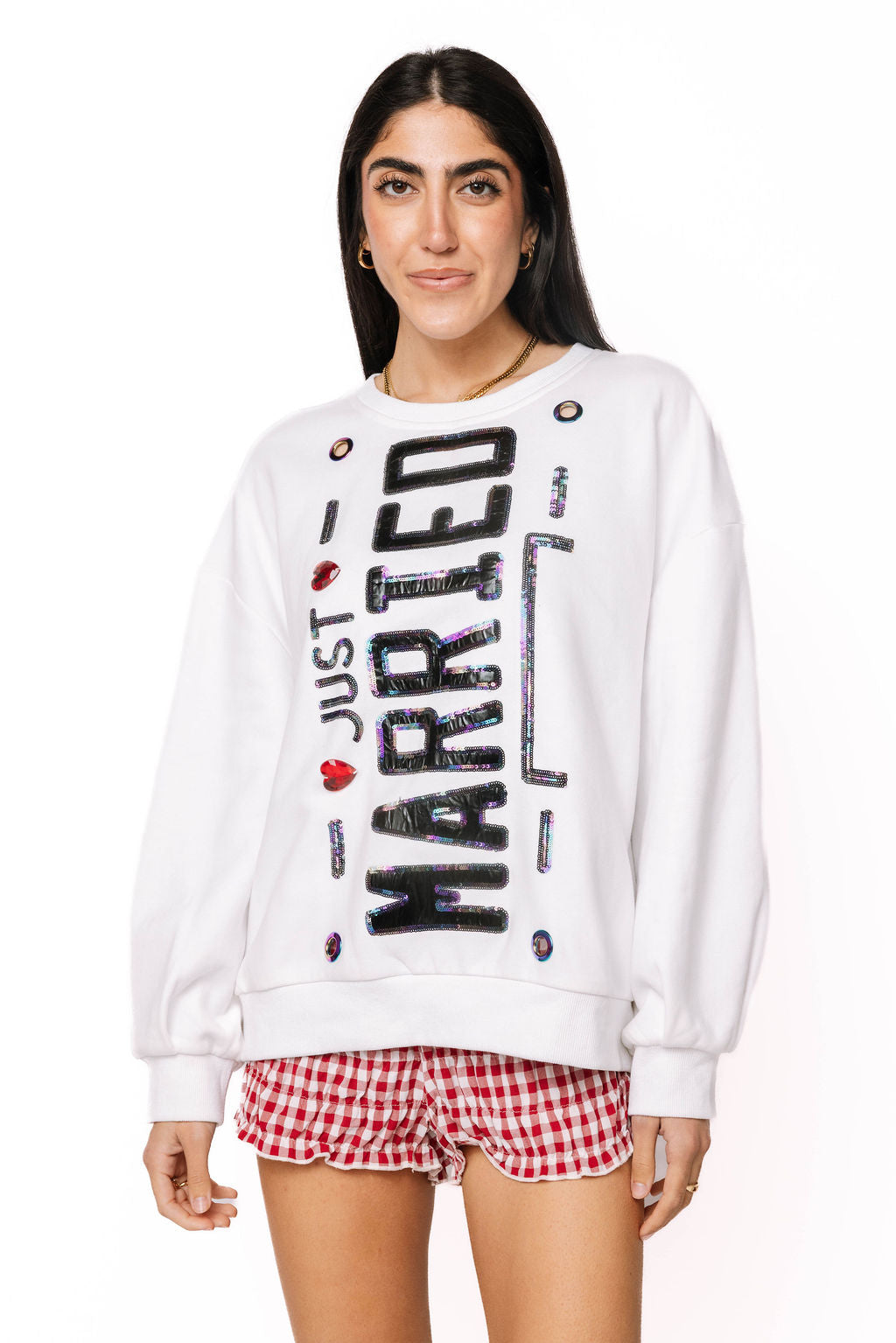Celebrate your newlywed status in style with this fun Just Married License Plate Sweatshirt! Perfect for honeymoons, road trips, or just showing off your newly married glow, this cozy pullover features a classic license plate design that's sure to turn heads. Soft, comfortable, and packed with personality, it's the ideal way to announce your big news while staying warm and looking fabulous. Whether you're hitting the open road or just living your best married life, this sweatshirt is your new go-to piece.