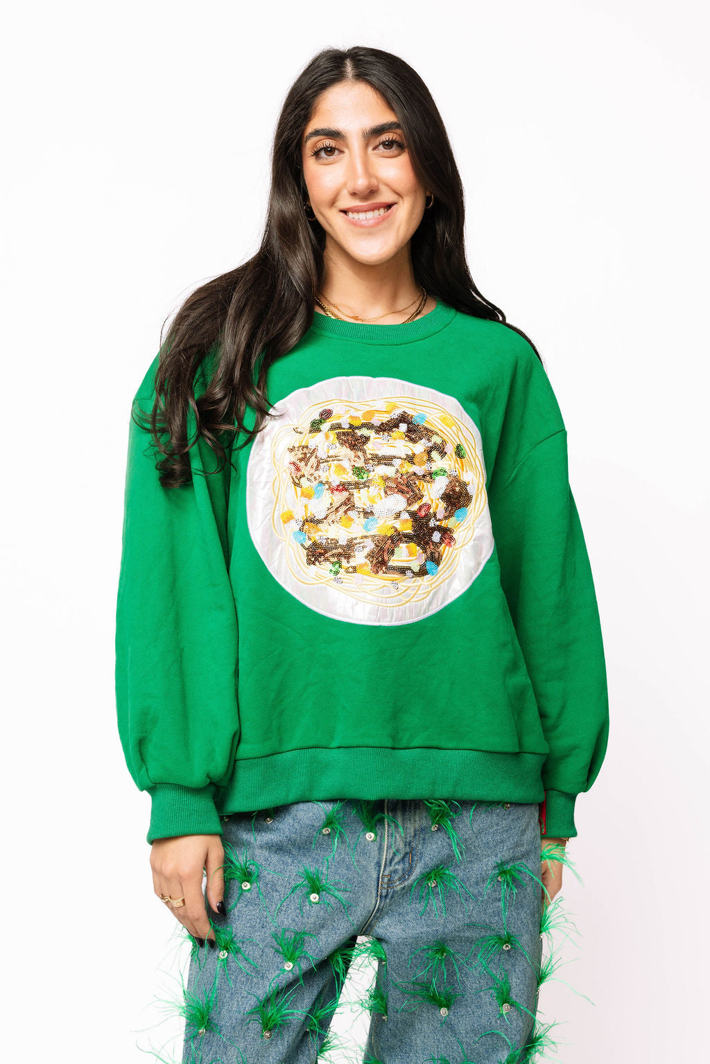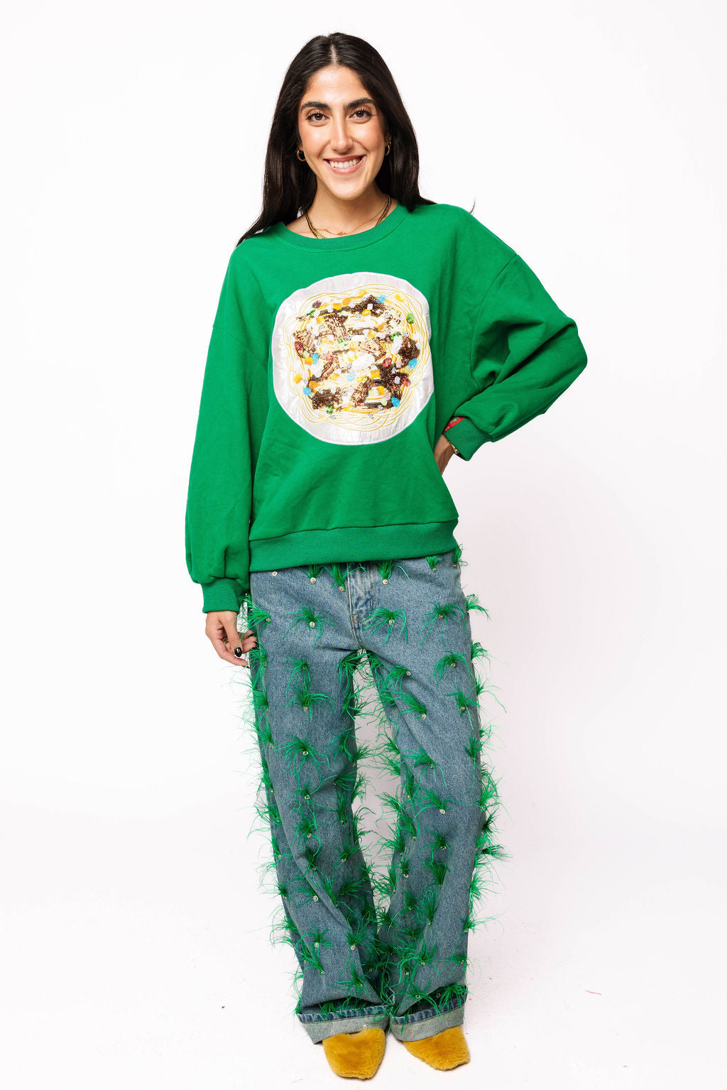 Celebrate the holiday spirit with our Green Elf Spaghetti Sweatshirt, inspired by one of the most beloved holiday movies. Featuring the iconic spaghetti scene from "Elf," this cozy sweatshirt combines festive cheer with a playful nod to your favorite holiday classic. Perfect for adding a touch of fun to your winter wardrobe or gifting to that Elf fan in your life!