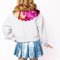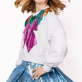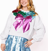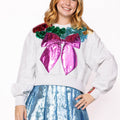 Keep your little ones cozy and stylish with this playful grey sweatshirt featuring a shimmering metallic wreath that wraps from front to back. Perfect for adding a festive sparkle to any casual day, its soft fabric ensures all-day comfort while the unique design makes every outfit shine bright. A fun and charming choice for kids who love a touch of sparkle!