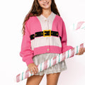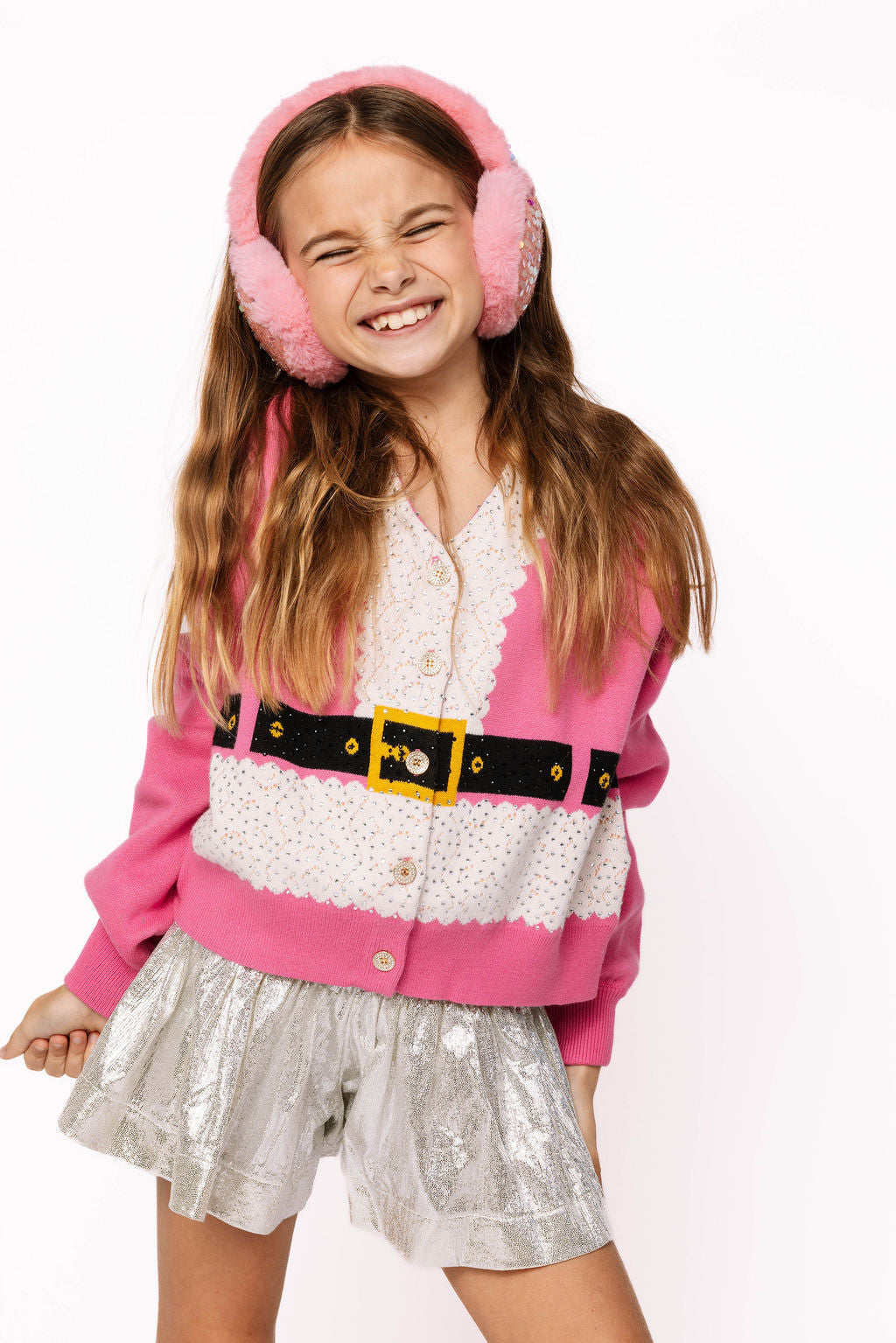 Dress your little one in festive cheer with this Kids Pink Santa's Coat Cardigan! Designed to mimic Santa's classic coat in a charming pink hue, it’s perfect for holiday fun and cozy days. Soft and snug, this playful cardigan adds a magical touch to any outfit. Plus, you can find the matching style in women’s sizes for a cute family look!