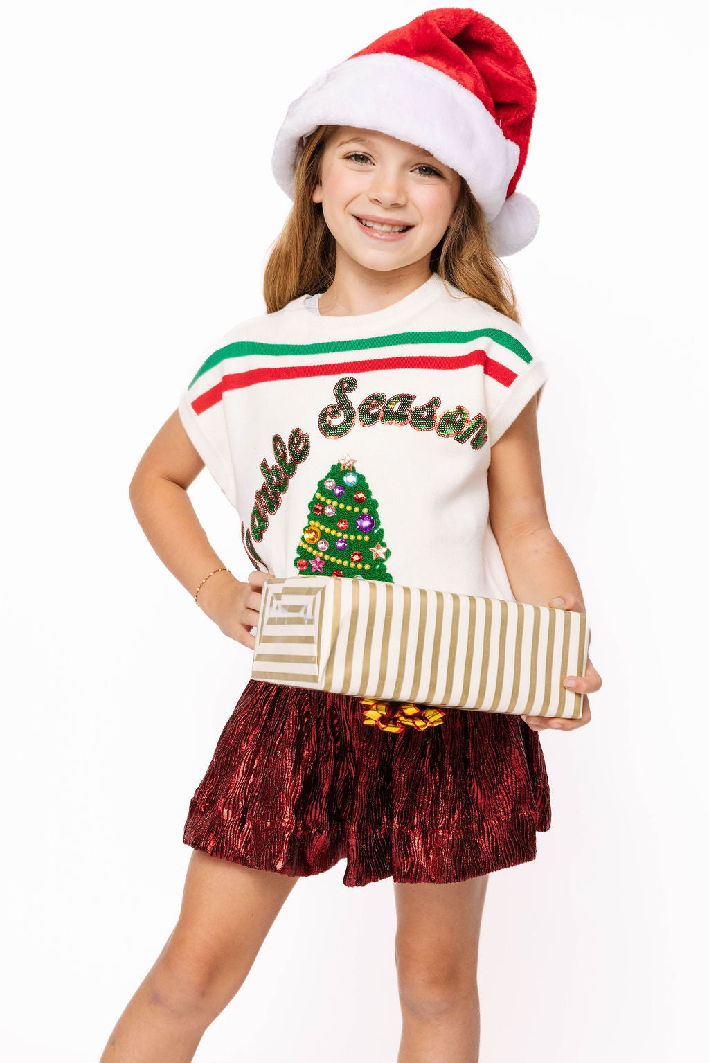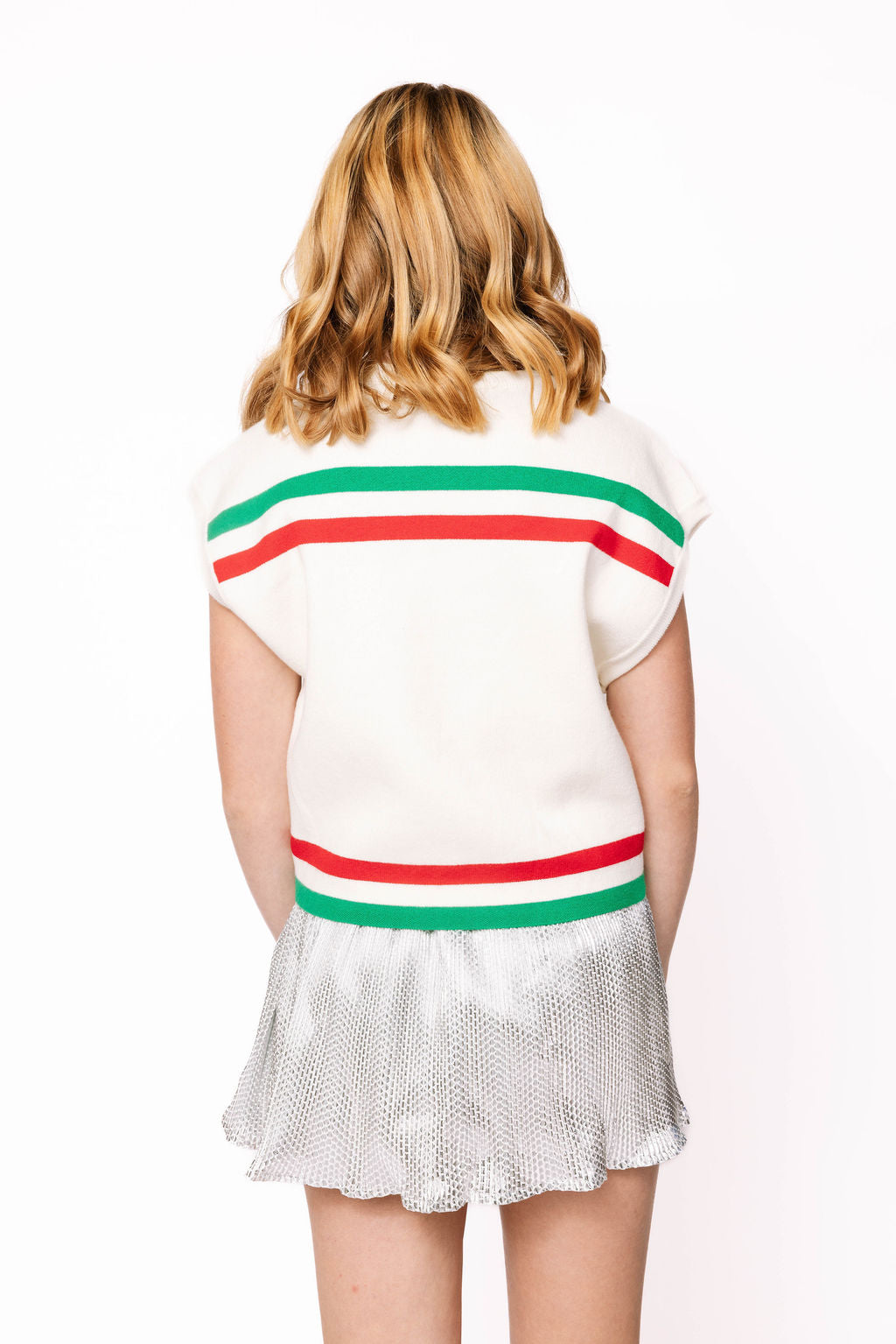 Kids White, Green & Red 'Sparkle Season' Stripe Top