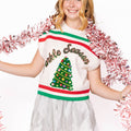 Celebrate the festive spirit with this playful white sweater, adorned with cheerful green and red stripes and a sparkling Christmas tree graphic. The "sparkle season" text adds a fun holiday touch, making it perfect for cozy gatherings.