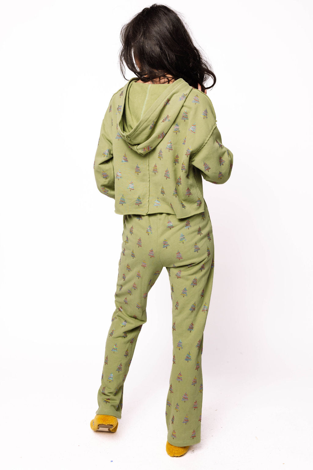 Add a cozy, festive touch to your wardrobe with these Mossy Green Scattered Multi Christmas Tree Sweatpants. Featuring charming small tree details, they bring a playful holiday spirit to your loungewear. Perfectly comfy for relaxing days or holiday fun, pair them with the matching sweatshirt to complete your merry, coordinated look.