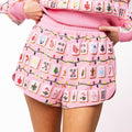 These playful pink shorts bring together festive cheer and unique style with a fun mahjong tile and Christmas light pattern. Perfect for holiday lounging or casual outings, they add a splash of whimsy and color to your wardrobe while keeping you comfortable all day long. Celebrate the season with a touch of sparkle and game night charm!