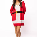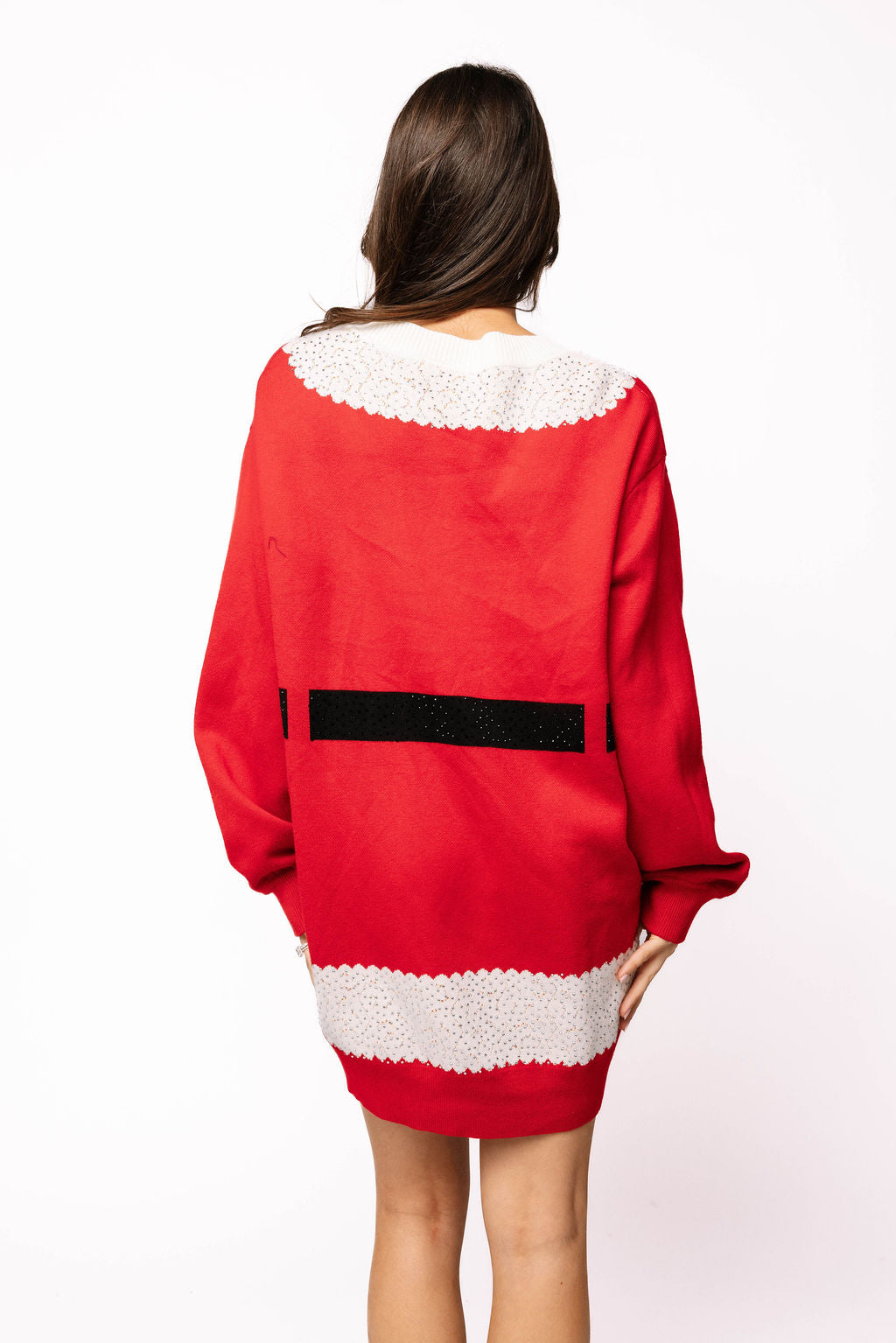 Make a festive statement in our Red Santa's Coat Sweater Dress. Designed with a slightly oversized fit, it wraps you in cozy comfort while keeping things playful. Style it with tights and boots for a winter-ready vibe or dress it up with heels to sparkle at any holiday gathering. Perfect for spreading cheer in style!