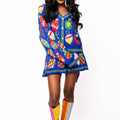 Celebrate the season in style with this royal blue skirt adorned with vibrant, colorful ornaments. Its lively design brings festive cheer to any outfit, while the rich blue hue adds a touch of elegance. Pair it with the matching cardigan for a playful, coordinated look that’s perfect for holiday parties and joyful gatherings.