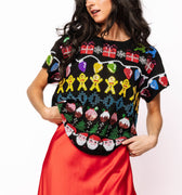 SAMPLE- Black Needlepoint Christmas Icons Tee