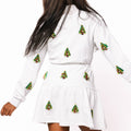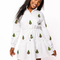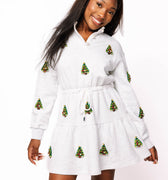 SAMPLE- Grey Beaded Christmas Tree Button Up Long Sleeve Dress