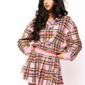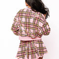 SAMPLE- Pink Plaid V Neck Sweatshirt and Skort Set