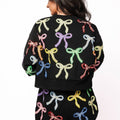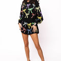 Step into fun with the Black Multi Bow Short! Featuring playful bows scattered across a sleek black background, these shorts add a touch of whimsy to your wardrobe. Comfortable and flirty, they’re perfect for lounging or dancing the day away with a carefree spirit. Embrace your playful side in style!