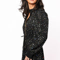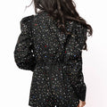 Turn heads and sparkle all night in this Black Multi Scattered Rhinestone Long Sleeve Romper. The scattered rhinestones catch the light with every move, adding a fun, dazzling touch to your look. Its long sleeves keep it chic while the romper style keeps you comfy and ready to dance. Perfect for parties when you want to shine bright with a playful vibe!
