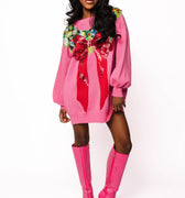 Bright Pink Multi Wreath Around Neck Sweater Dress
