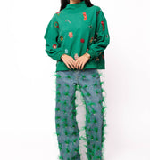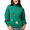 Dark Green Small Christmas Icon Mock Neck Sweatshirt