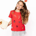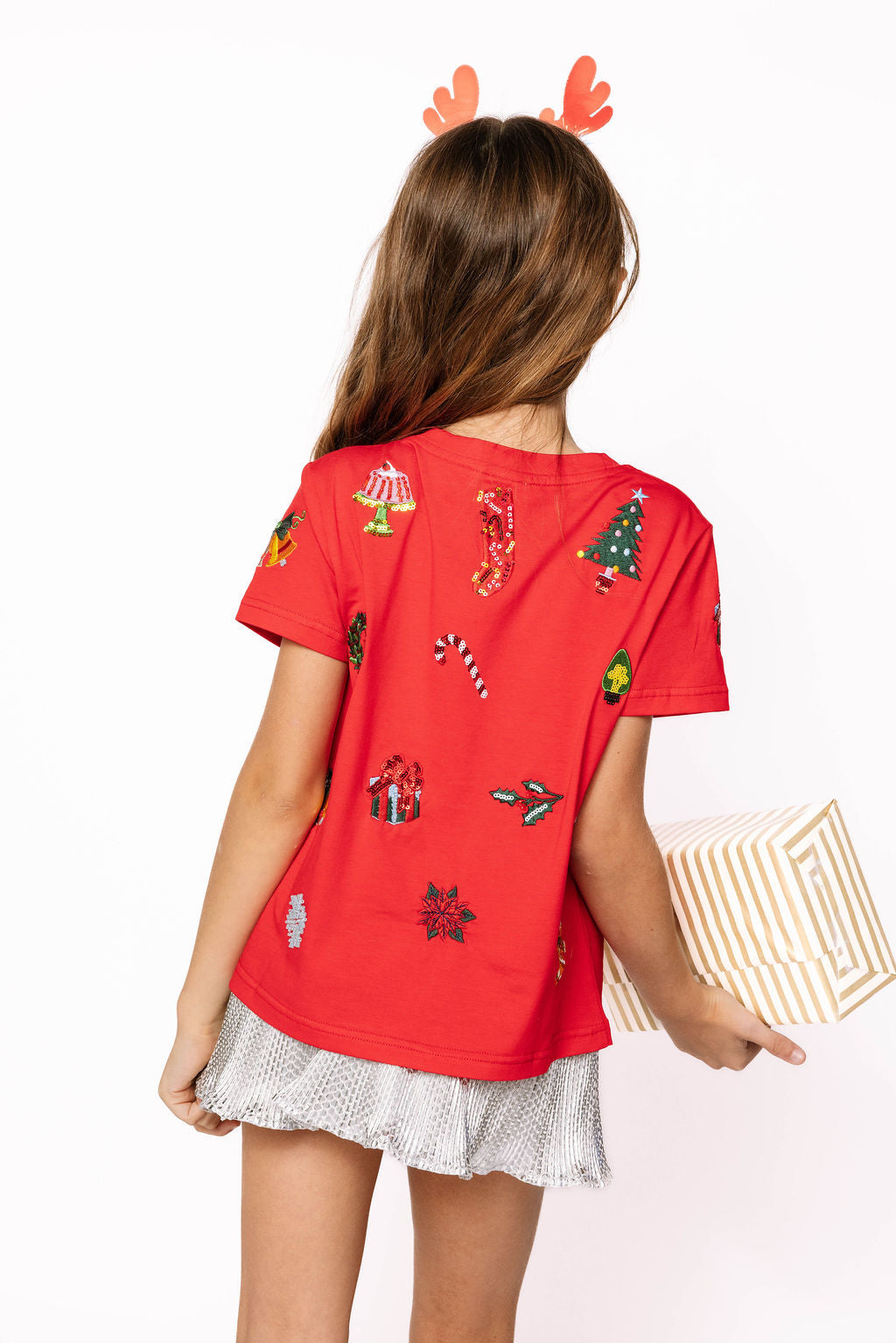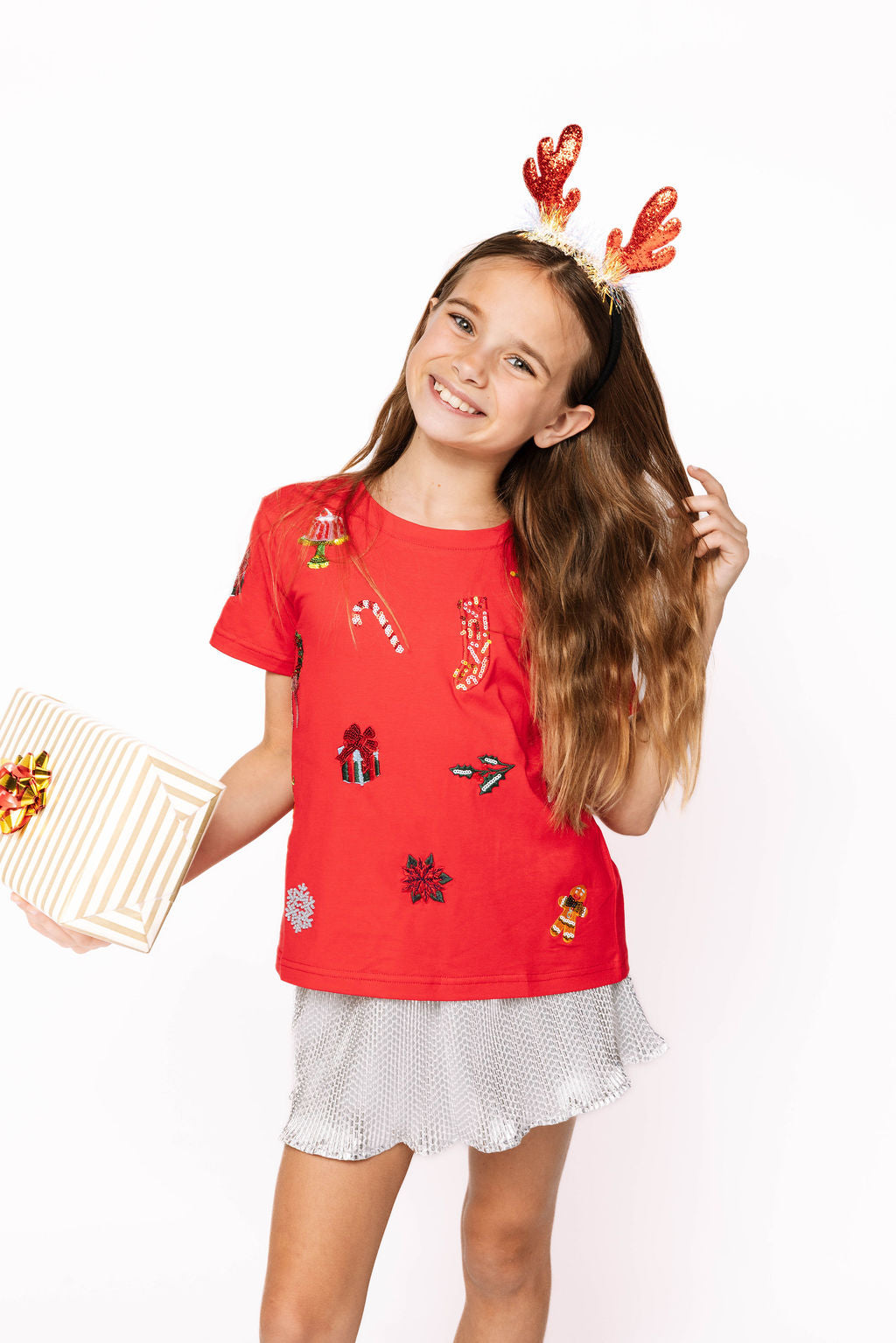 Get your little ones ready for festive fun with this vibrant red Christmas tee! Featuring a charming small holiday icon, it's perfect for spreading joy and holiday cheer. Soft, comfy, and easy to wear, this tee makes every day feel like a celebration for your kids. Ideal for holiday parties, playdates, or cozy days at home.