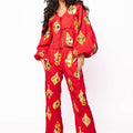 Step into festive fun with our Red & Gold Jeweled Ornament Cotton Pant! Crafted from soft cotton, these playful pants shine with sparkling jewel-inspired accents that bring holiday cheer to your cozy moments. Perfect for lounging or dazzling at seasonal gatherings, they mix comfort with a touch of sparkle you’ll love to show off.