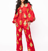 Red & Gold Jeweled Ornament Cotton Pant