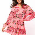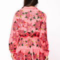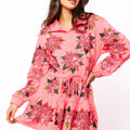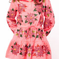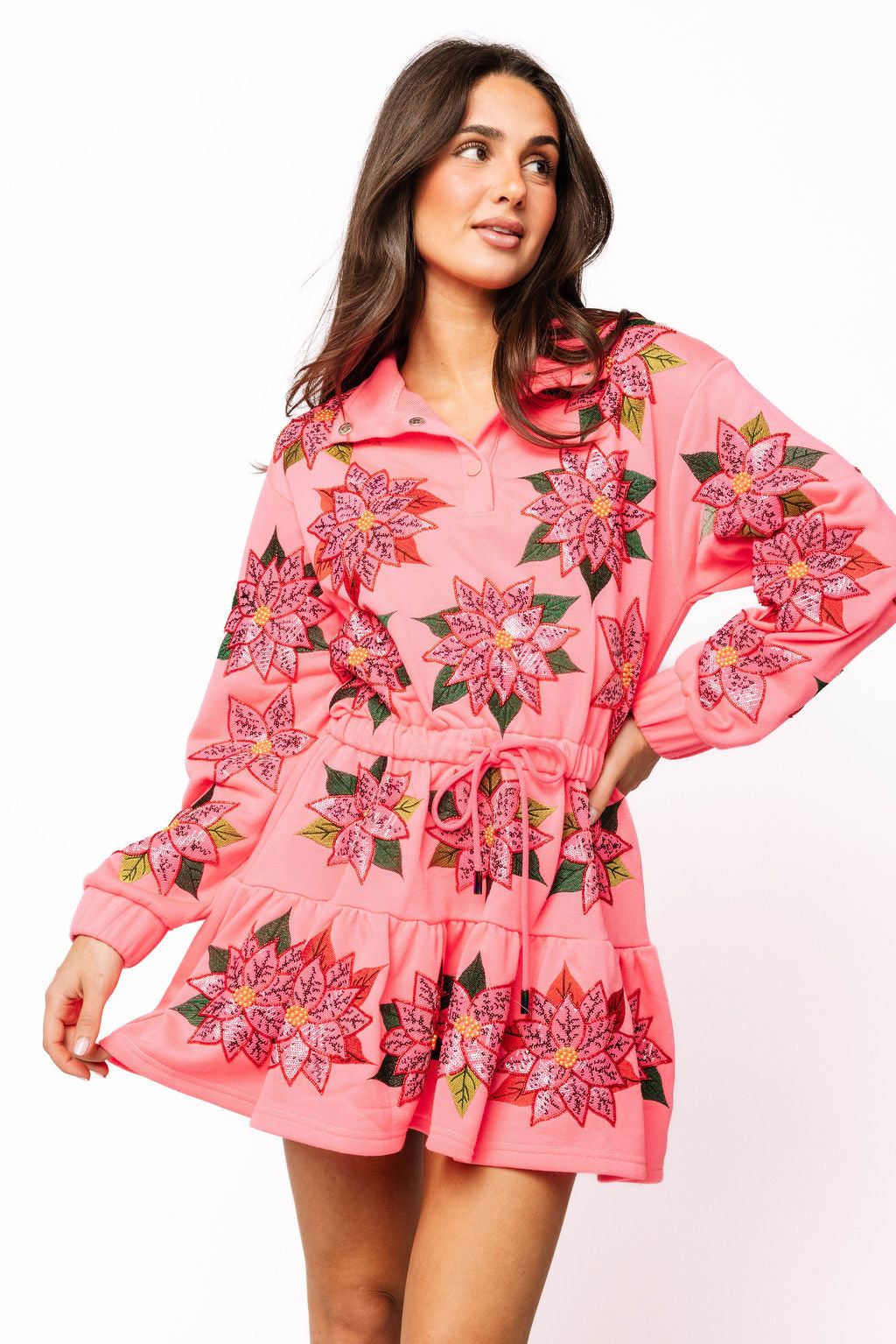Neon Pink Poinsettia Button Up Mock Neck Tie Sweatshirt Dress