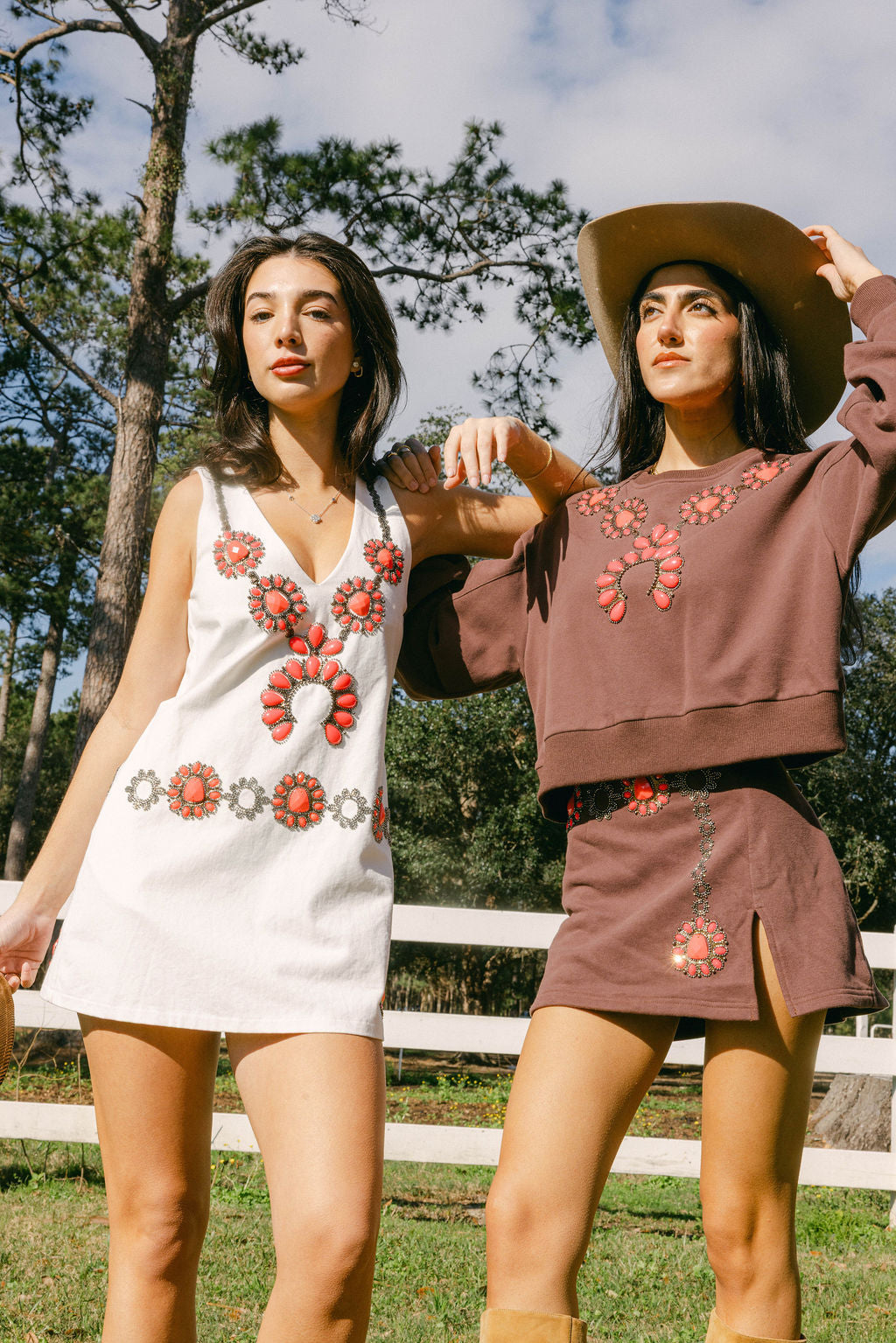 Saddle up in this white denim tank dress that's giving major western charm! The V-neckline keeps things cool and flattering, while the pink necklace and belt design add a fun pop of color and personality. Perfect for channeling your inner cowgirl—whether you're hitting the rodeo, a country concert, or just bringing some sparkle to your everyday style. Throw on your favorite boots and you're ready to turn heads!