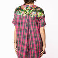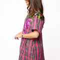 Pink Plaid Metallic Wreath Short Sleeve Cotton Dress