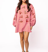 Get ready to jingle all the way in this Red Striped Flying Santa & Reindeer Long Sleeve Dress! With cheerful stripes and a whimsical Santa and reindeer design, it’s perfect for spreading holiday joy. Comfortable long sleeves keep you cozy while you celebrate in style. This dress brings festive fun to any holiday party or casual winter day!