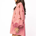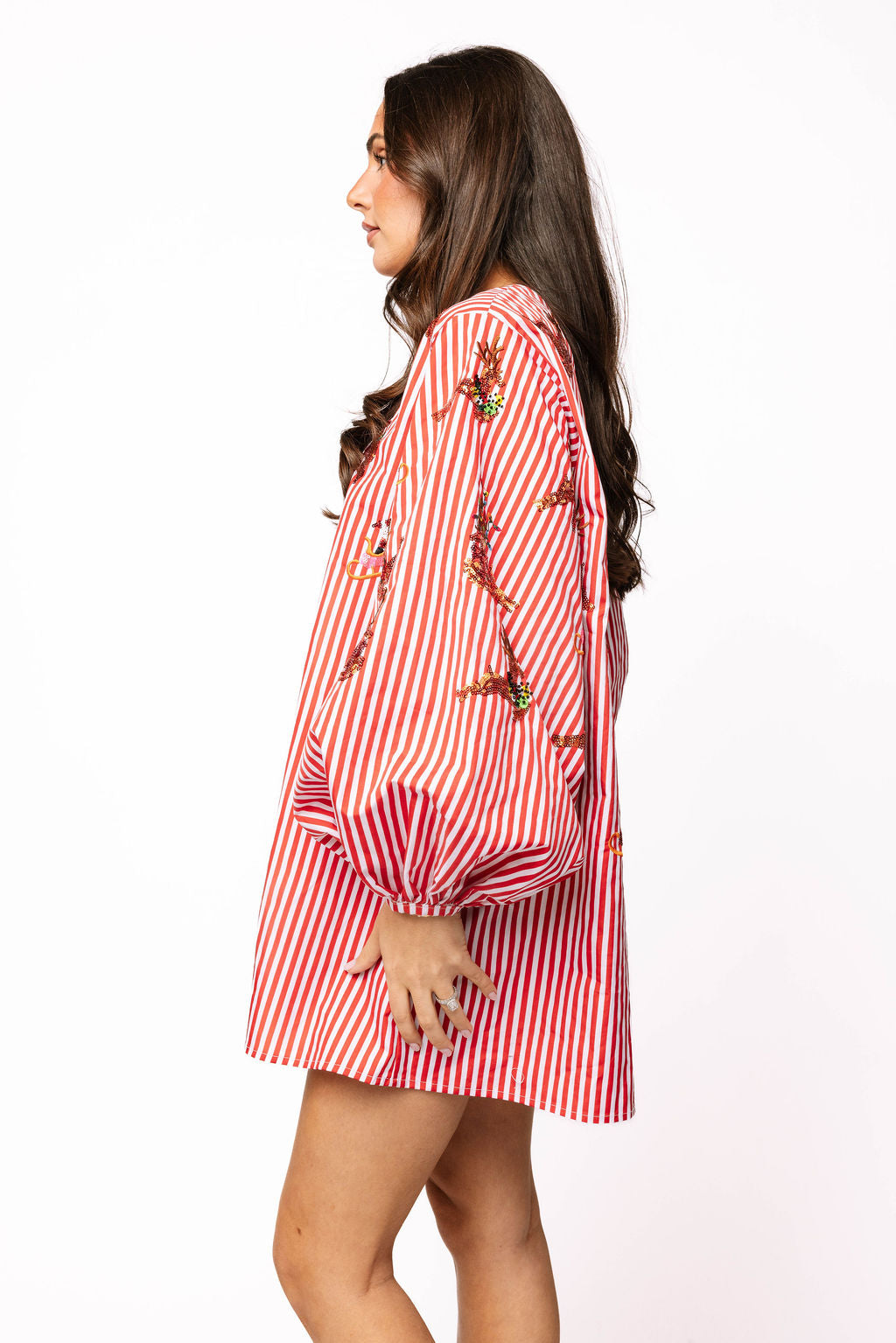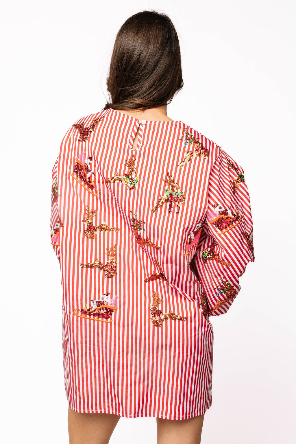 Red Striped Flying Santa & Reindeer Long Sleeve Dress