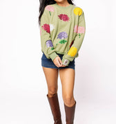 Bring cozy charm to your wardrobe with the Moss Green Multi Mums Sweatshirt. Featuring a lively mix of colorful mums on a soothing moss green backdrop, this sweatshirt adds a playful pop to any casual outfit. Soft and comfy, it’s perfect for chilly days when you want to feel snug and stylish all at once. Embrace warmth and whimsy with this must-have seasonal staple!