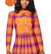Licensed Sample - Clemson Plaid Mascot Sweater Dress