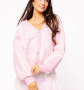 Add a fun twist to your wardrobe with this Light Pink Skeleton Button Up Cardigan. Soft and cozy, it combines a cheerful pastel hue with quirky skeleton details for a look that’s both comfy and delightfully unexpected. Perfect for layering or making a playful statement wherever you go!