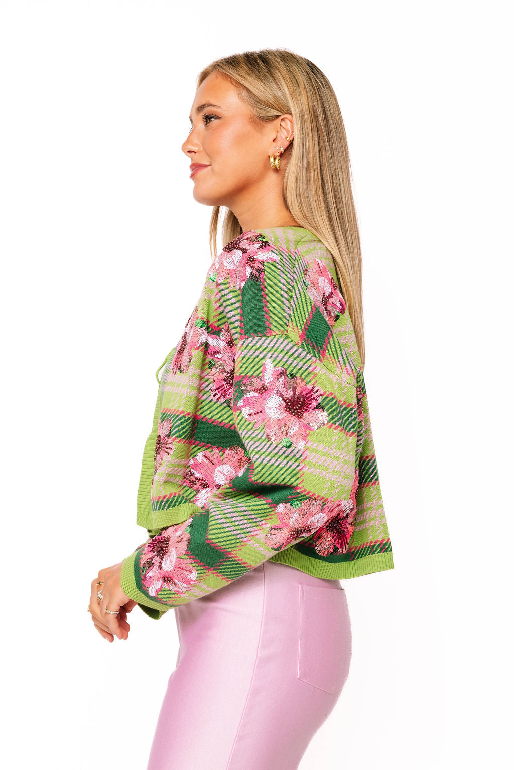 Green & Pink Azalea Tie Up Sweater