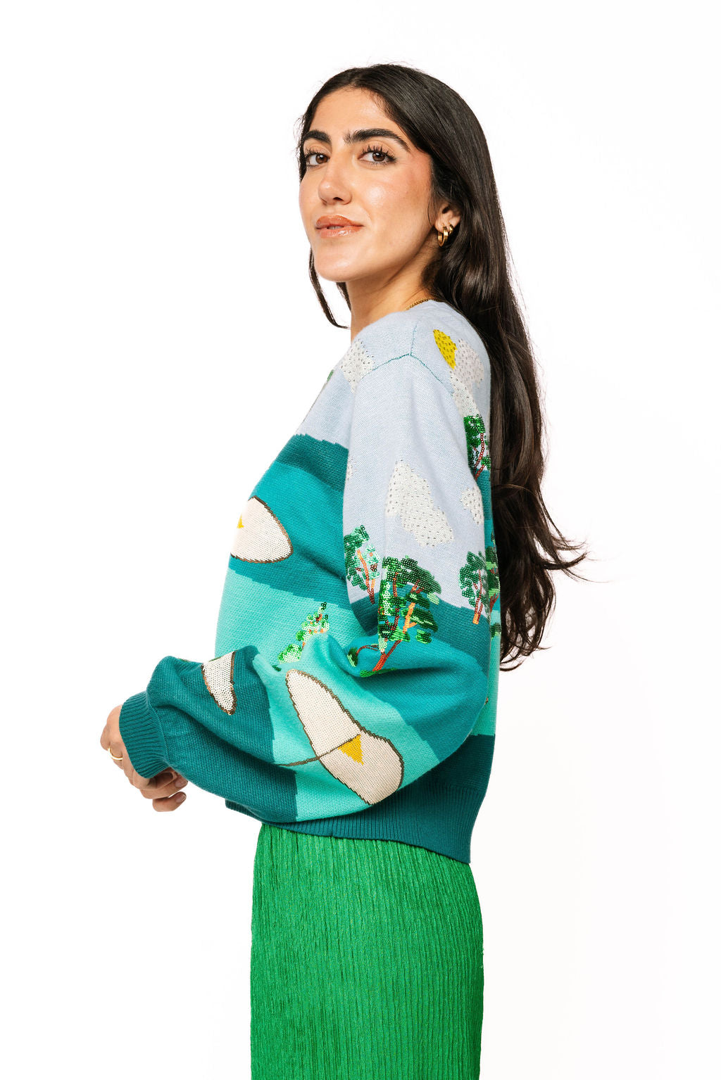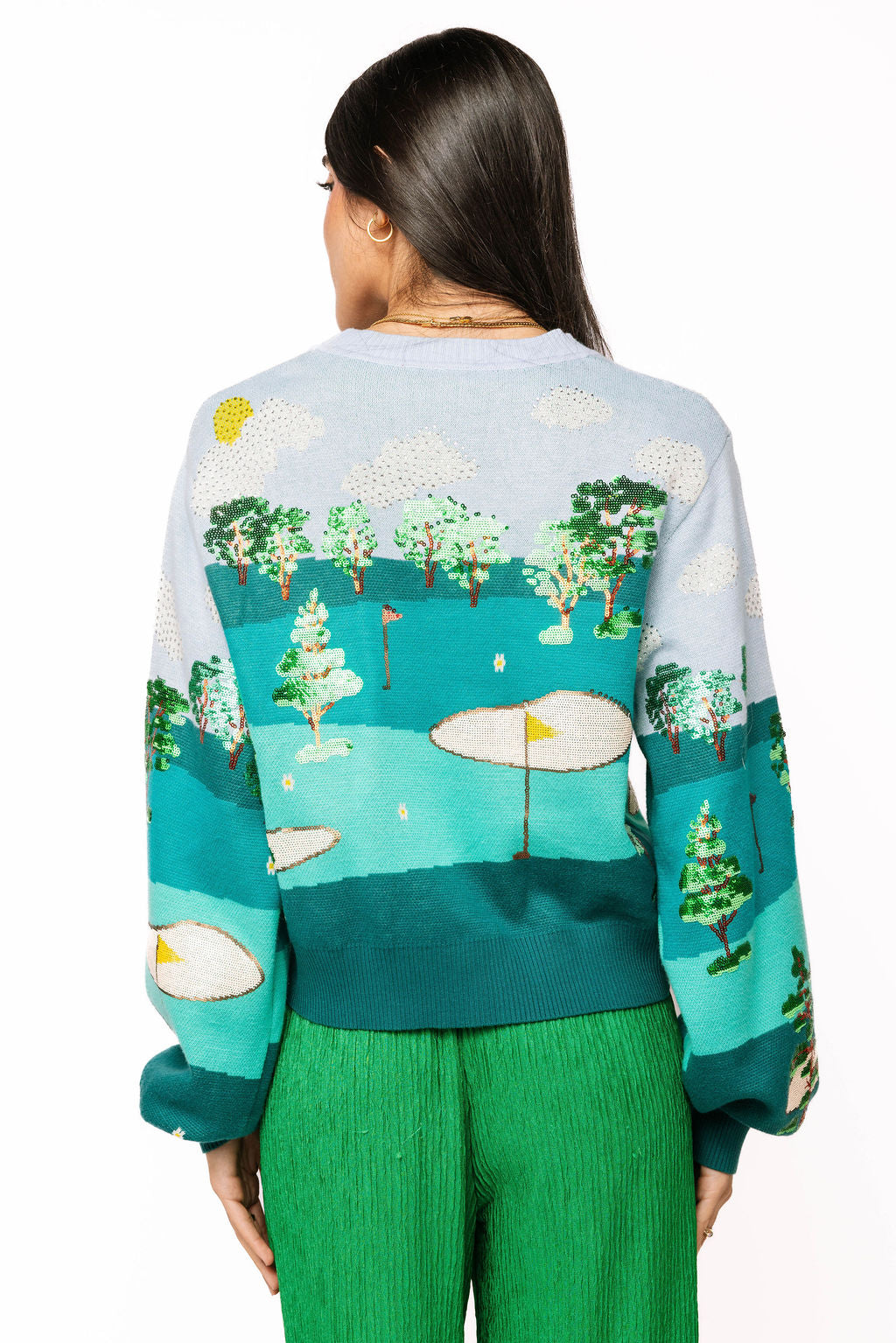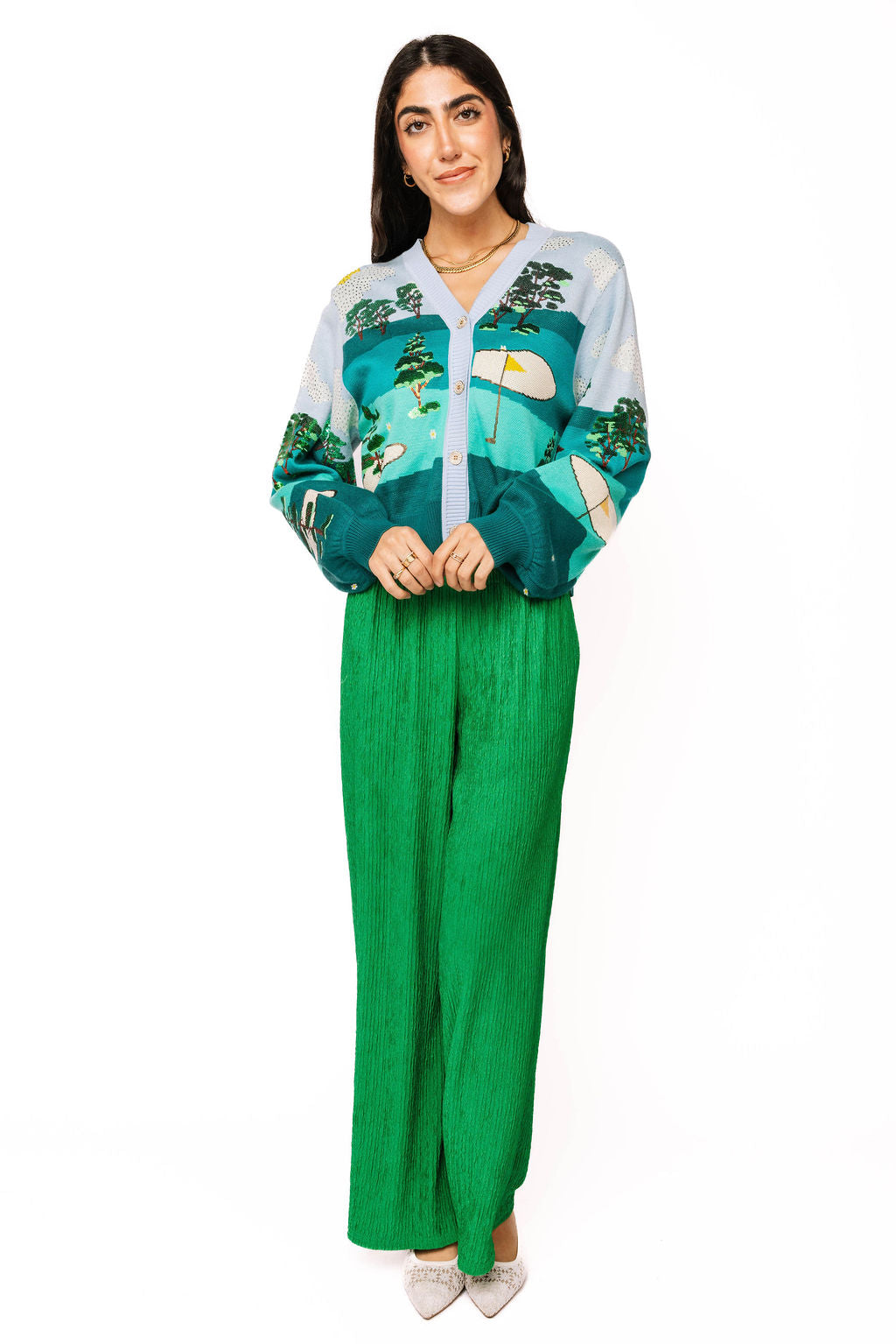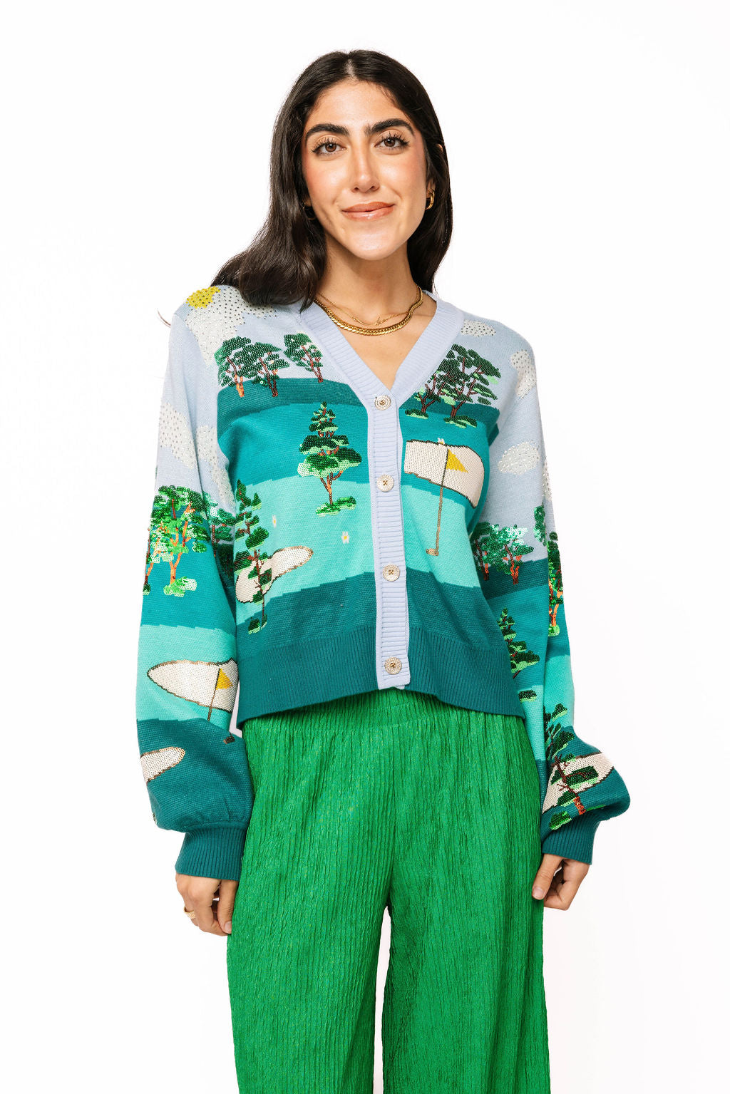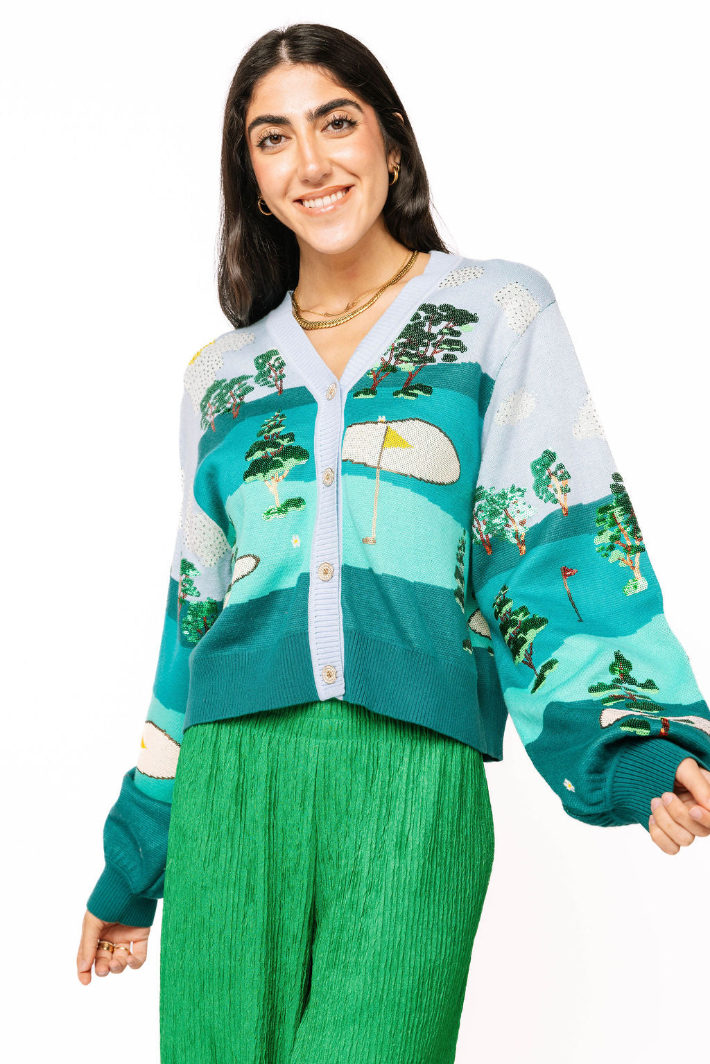 Multi Golf Course Scene Button Up Cardigan