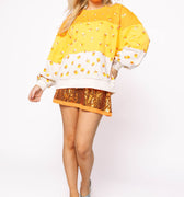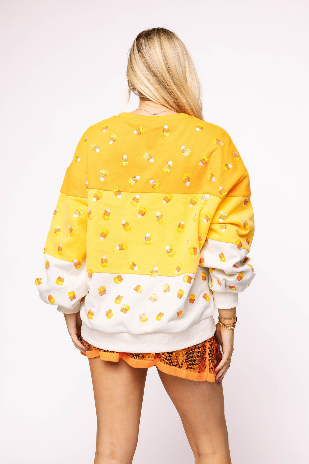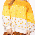 Brighten your cozy days with the Orange Colorblock Candy Corn Sweatshirt, blending vibrant autumn hues with sweet candy corn charm. Its playful design keeps you comfy and stylish, perfect for festive vibes or casual fun.