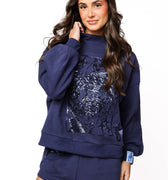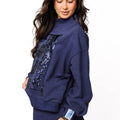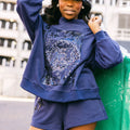 Rock our iconic Queen Card Logo in navy with this cozy mock neck sweatshirt—the ultimate staple for any sparkle lover. The elevated neckline keeps you warm and stylish, while the relaxed fit ensures all-day comfort. Pair it with our matching shorts for a coordinated look that screams confidence and flair. Perfect for lounging, running errands, or showing off your Queen of Sparkles pride wherever you go!