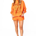 Rock our iconic Queen Card Logo in bold orange with this cozy mock neck sweatshirt—the ultimate staple for any sparkle lover. The elevated neckline keeps you warm and stylish, while the relaxed fit ensures all-day comfort. Pair it with our matching shorts for a coordinated look that screams confidence and flair. Perfect for lounging, running errands, or showing off your Queen of Sparkles pride wherever you go!