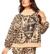 Tan Leopard Print QOS Card Logo Sweatshirt