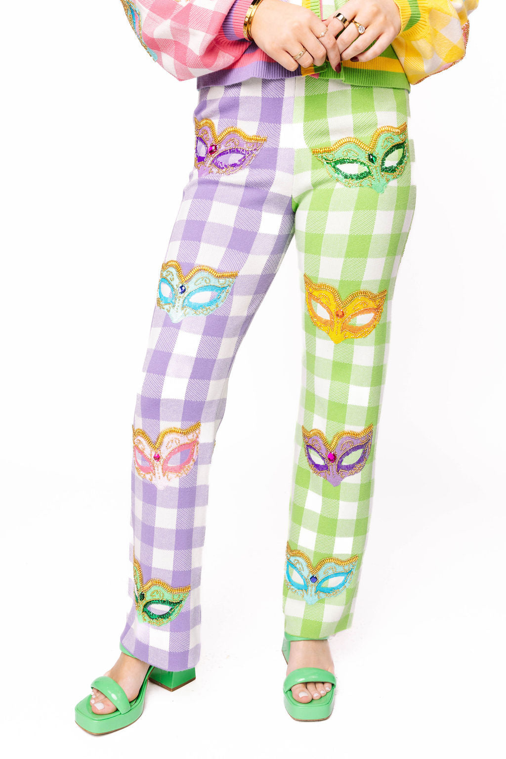 Colorblock Pastel Gingham Mardi Gras Mask Pant